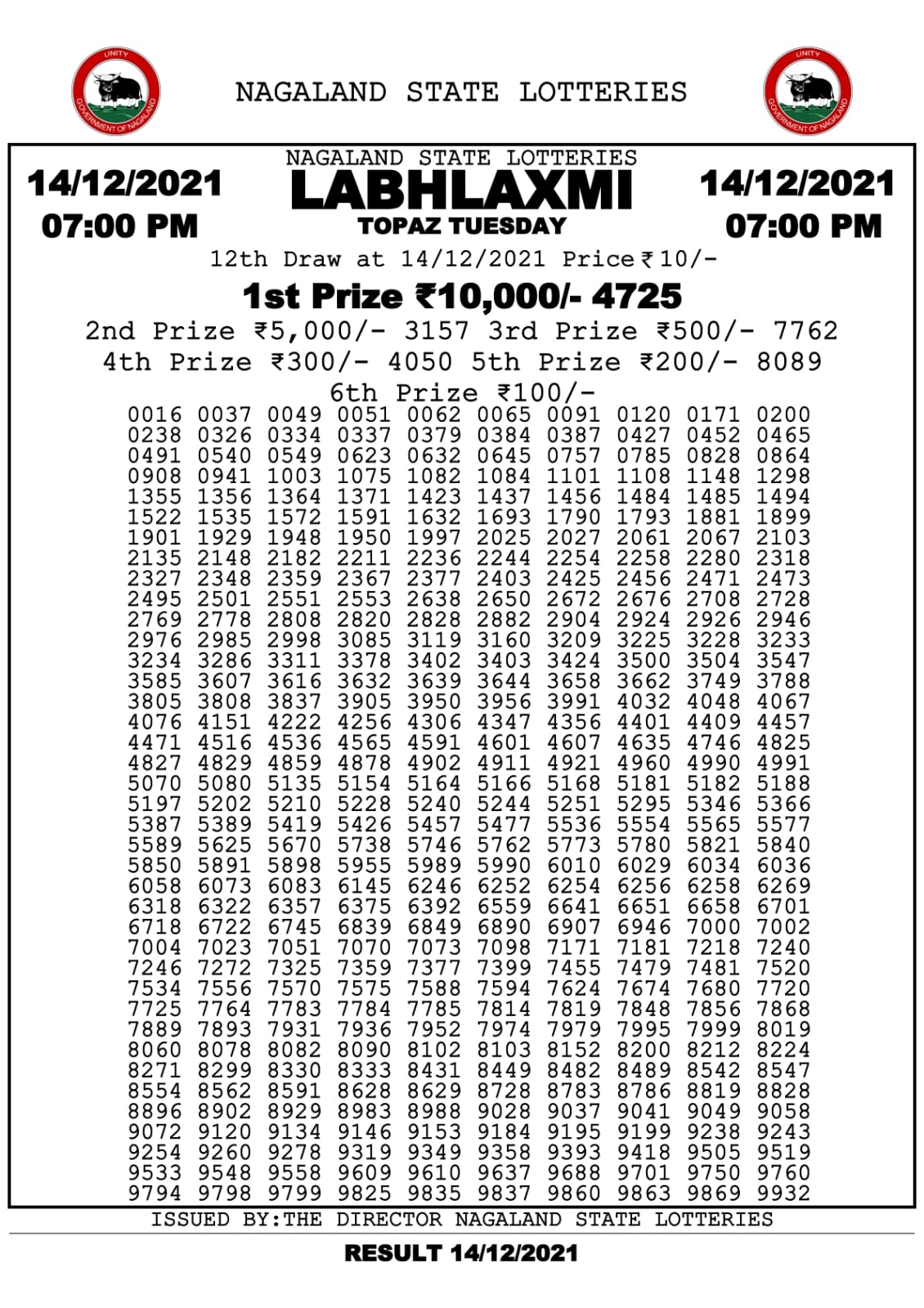 • Nagaland Dear Lottery Result Today 16.12.25 8 PM Live