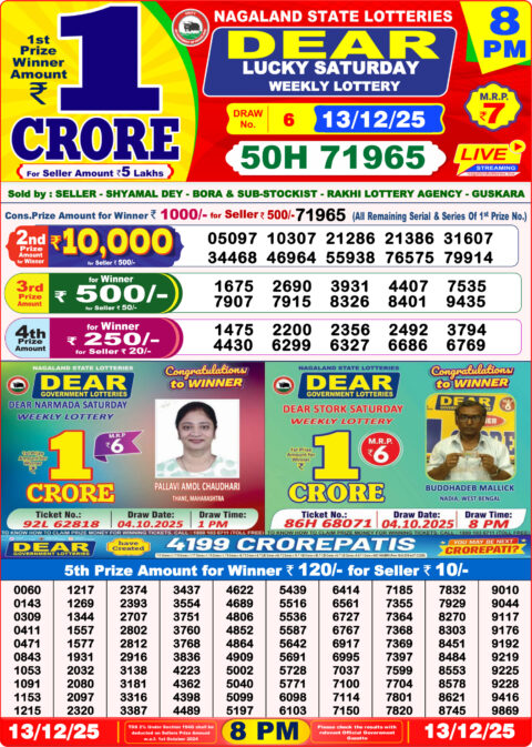 Nagaland Dear Lottery Result Today 13.12.25 8 PM Live