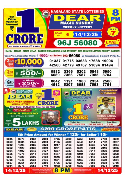 Nagaland Dear Lottery Morning Result 14.12.25 1 PM