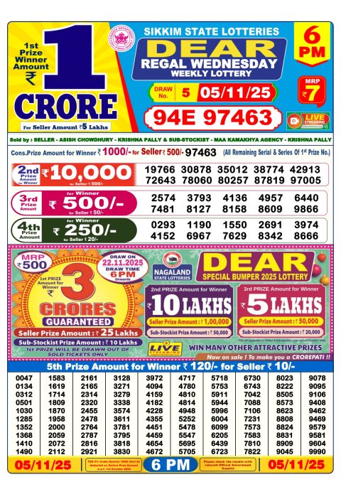 Nagaland Dear Lottery Morning Result 05.11.25 1 PM