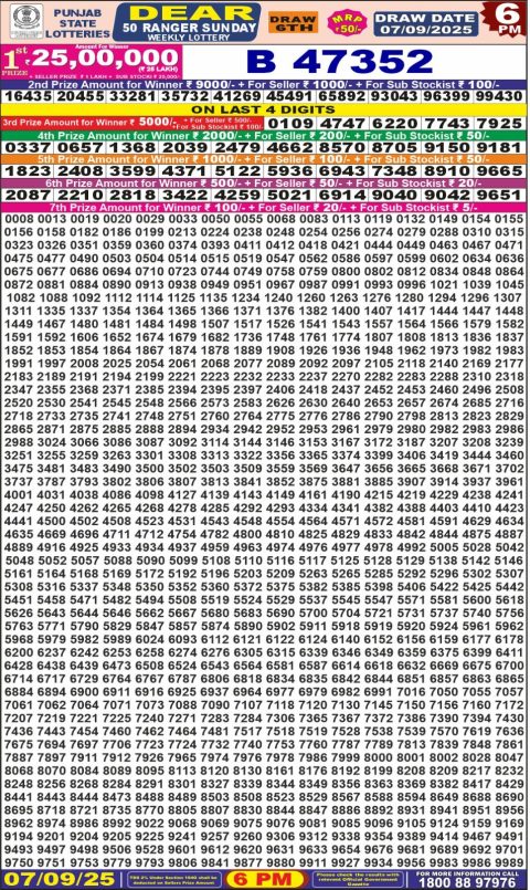 Punjab State Dear 50 Lottery Result 6PM 07.09.25