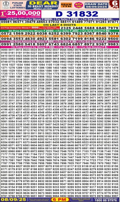 Punjab State Dear 50 Lottery Result 6PM 08.09.25