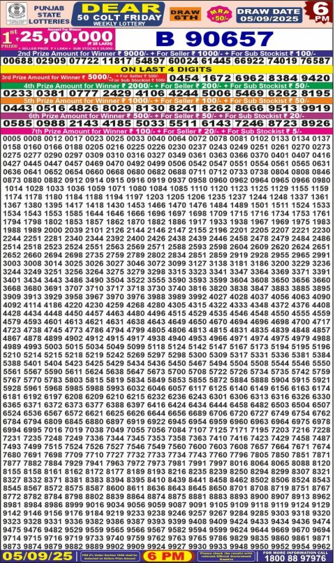 Punjab State Dear 50 Lottery Result 6PM 05.09.25
