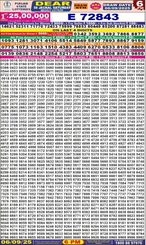 Punjab State Dear 50 Lottery Result 6PM 06.09.25