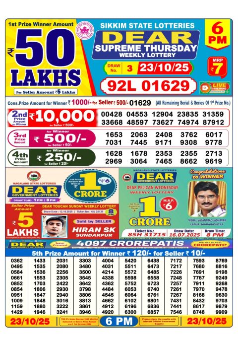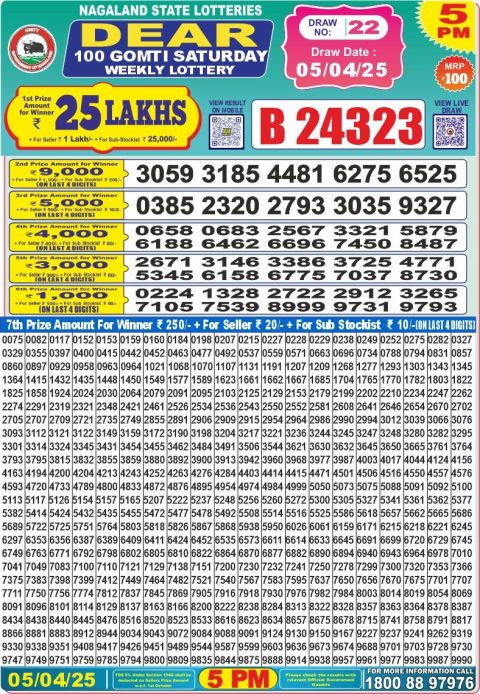 Nagaland Dear Lottery Morning Result 23.10.25 1 PM