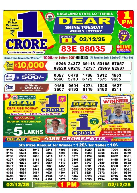 Nagaland Dear Lottery Morning Result 02.12.25 1 PM