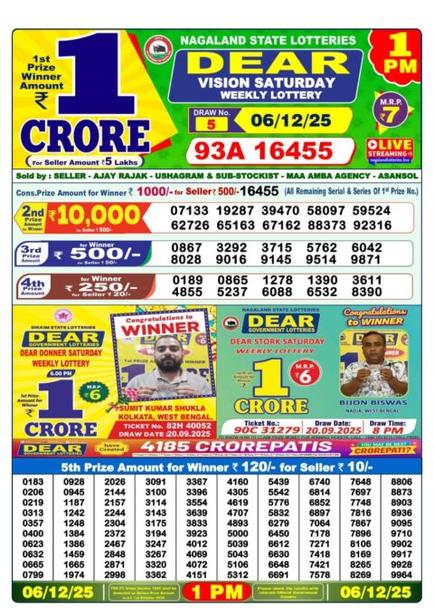 Nagaland Dear Lottery Morning Result 06.12.25 1 PM