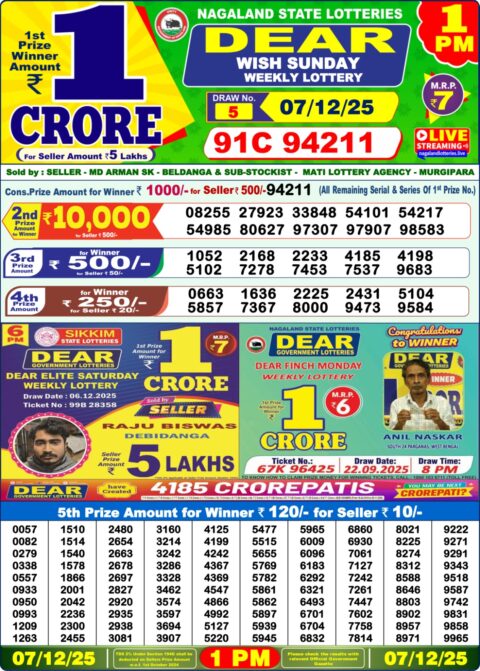 Nagaland Dear Lottery Morning Result 07.12.25 1 PM