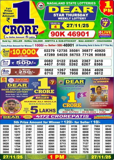 Nagaland Dear Lottery Morning Result 27.11.25 1 PM