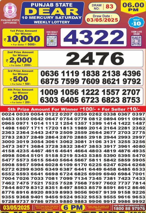 Punjab State Dear 50 Lottery Result 6PM 10.12.25