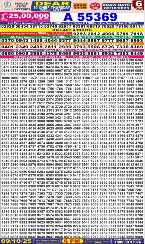 Punjab State Dear 50 Lottery Result 6PM 09.10.25
