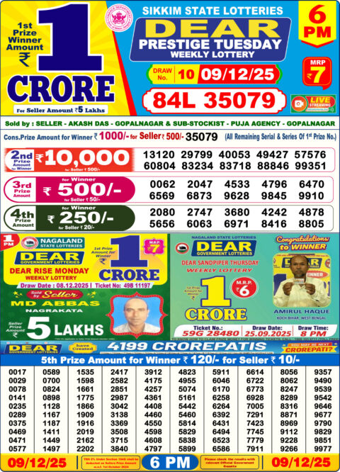 Nagaland State Dhan Kesari Lottery Sambad Result 1PM 6PM 8PM Labh Laxmi Dear Daily Lottery