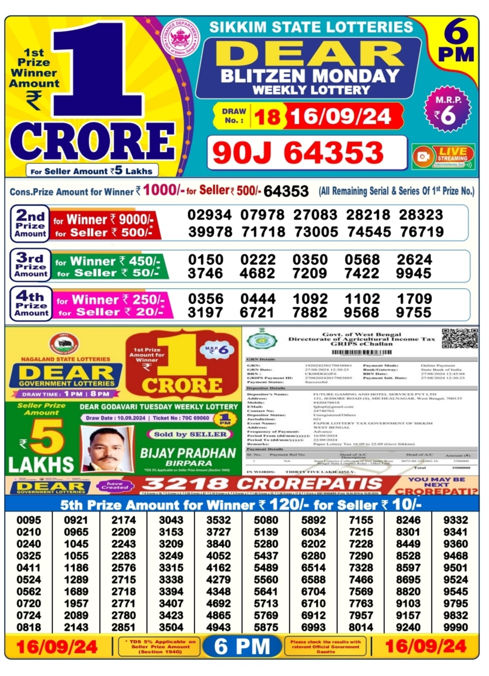 Nagaland State Dhan Kesari Lottery Sambad Result 1PM 6PM 8PM Labh Laxmi Dear Daily Lottery