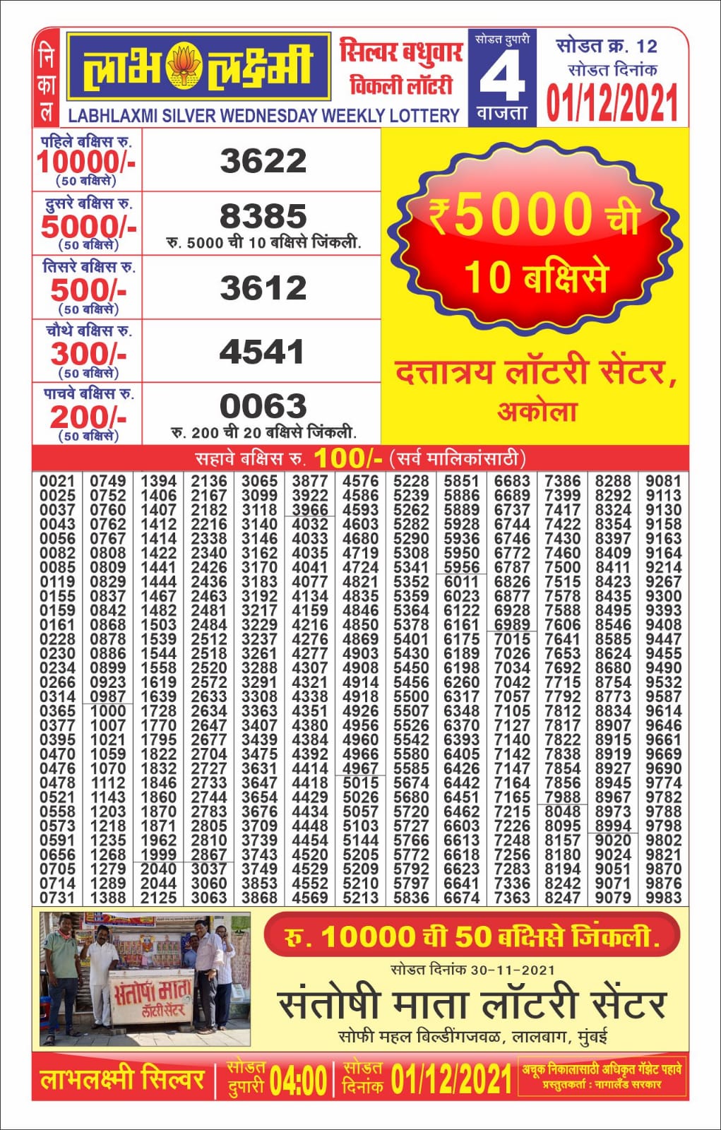 Labhlaxmi 4pm Lottery Result 01.12.2021