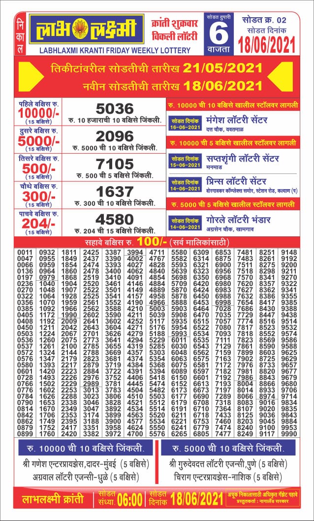 Labhlaxmi 6:00 p.m. lottery 17. 06.2021