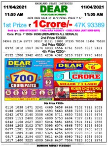 Daily dear 11.55 am. lottery result 11. 04.2021