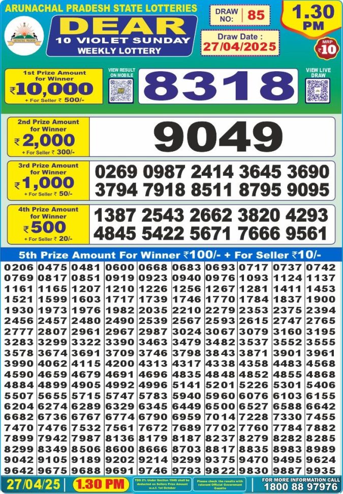 Dear lottery 1 p.m. result 27.04 2025 →