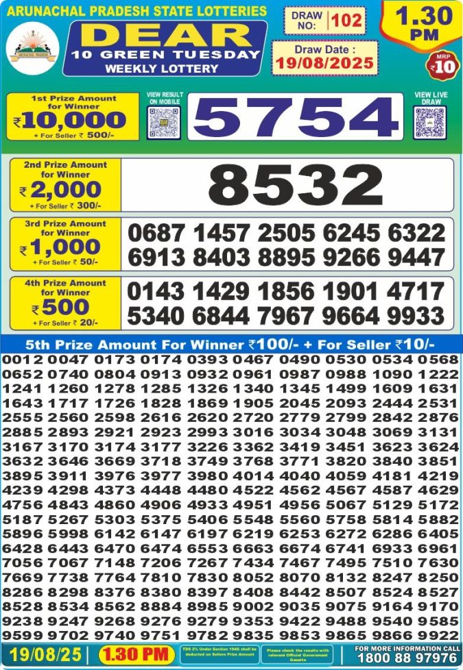 Dear 10 Lottery Result 19.08.25 1:30 PM