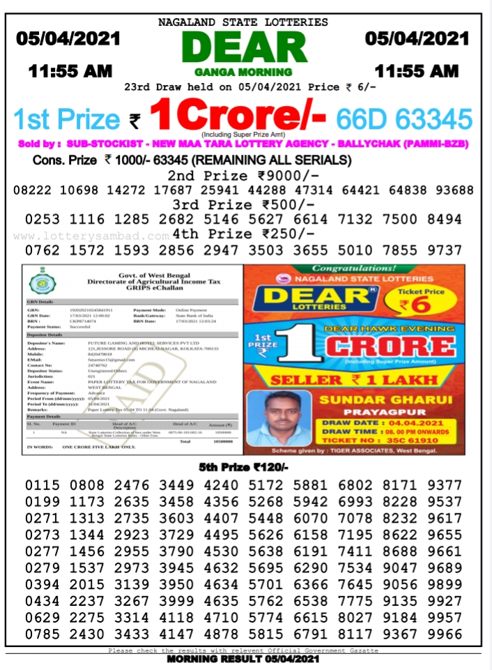 • Nagaland Dear Lottery Morning Result 14.12.25 1 PM