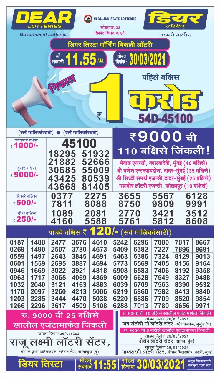 • Nagaland Dear Lottery Morning Result 17.12.25 1 PM