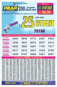 Dear 200 budh weekly lottery 04-30 pm 21-07-2021