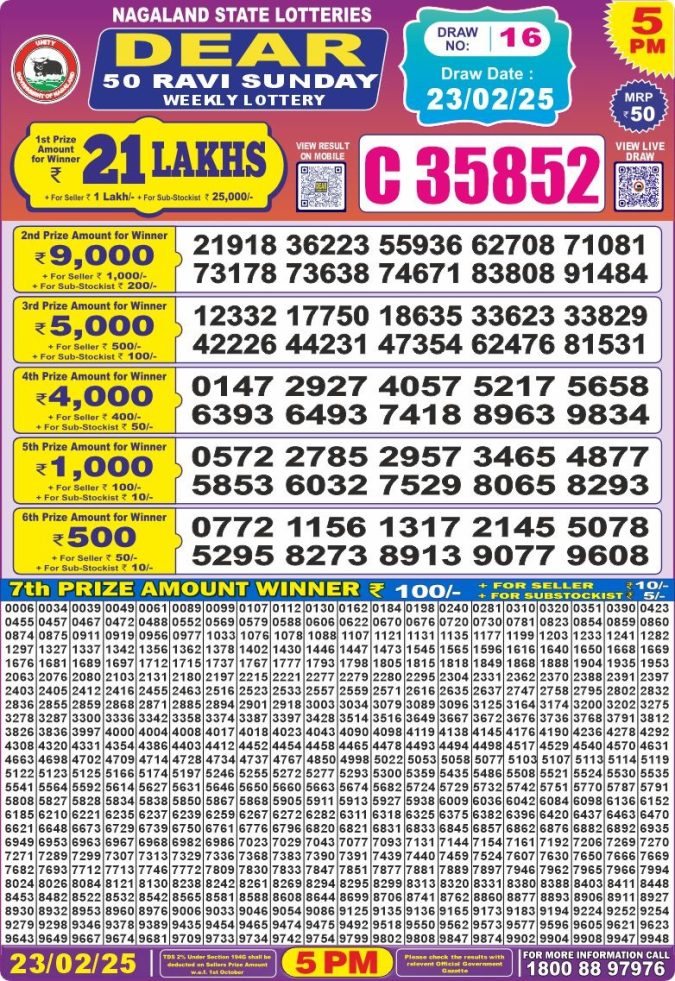 • Nagaland Dear Lottery Morning Result 16.12.25 1 PM