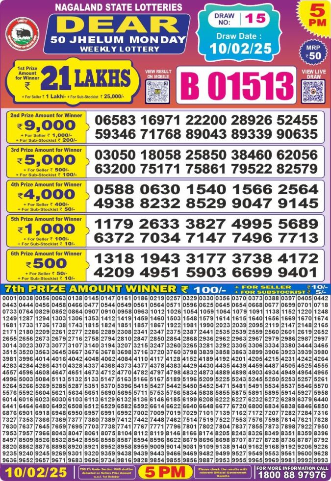 • Nagaland Dear Lottery Morning Result 16.12.25 1 PM