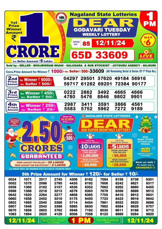 • Nagaland Dear Lottery Morning Result 16.12.25 1 PM