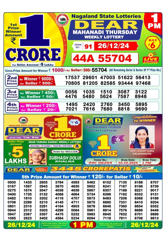 • Nagaland Dear Lottery Morning Result 16.12.25 1 PM