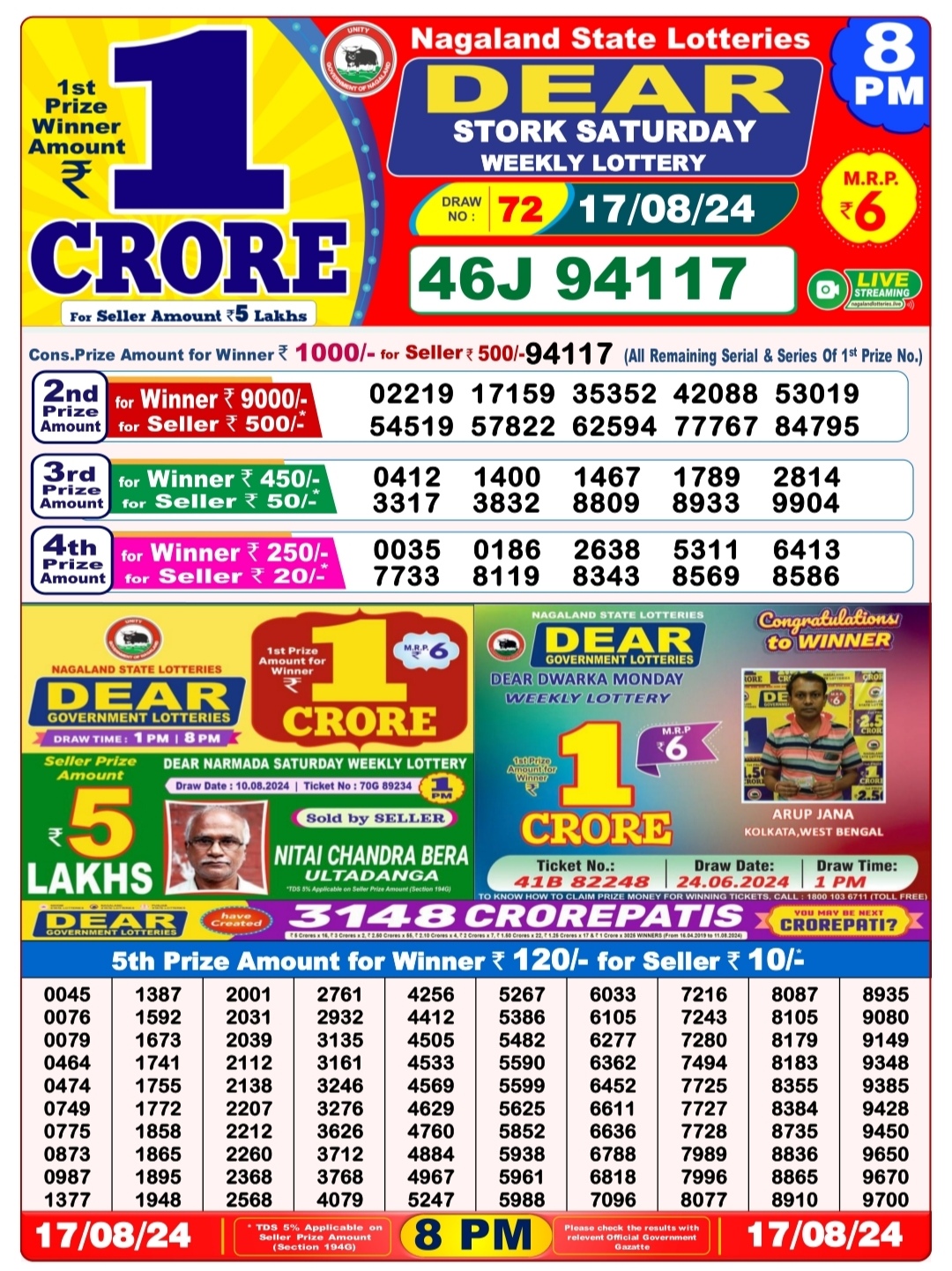 • Nagaland Dear Lottery Result Today 17.12.25 8 PM Live