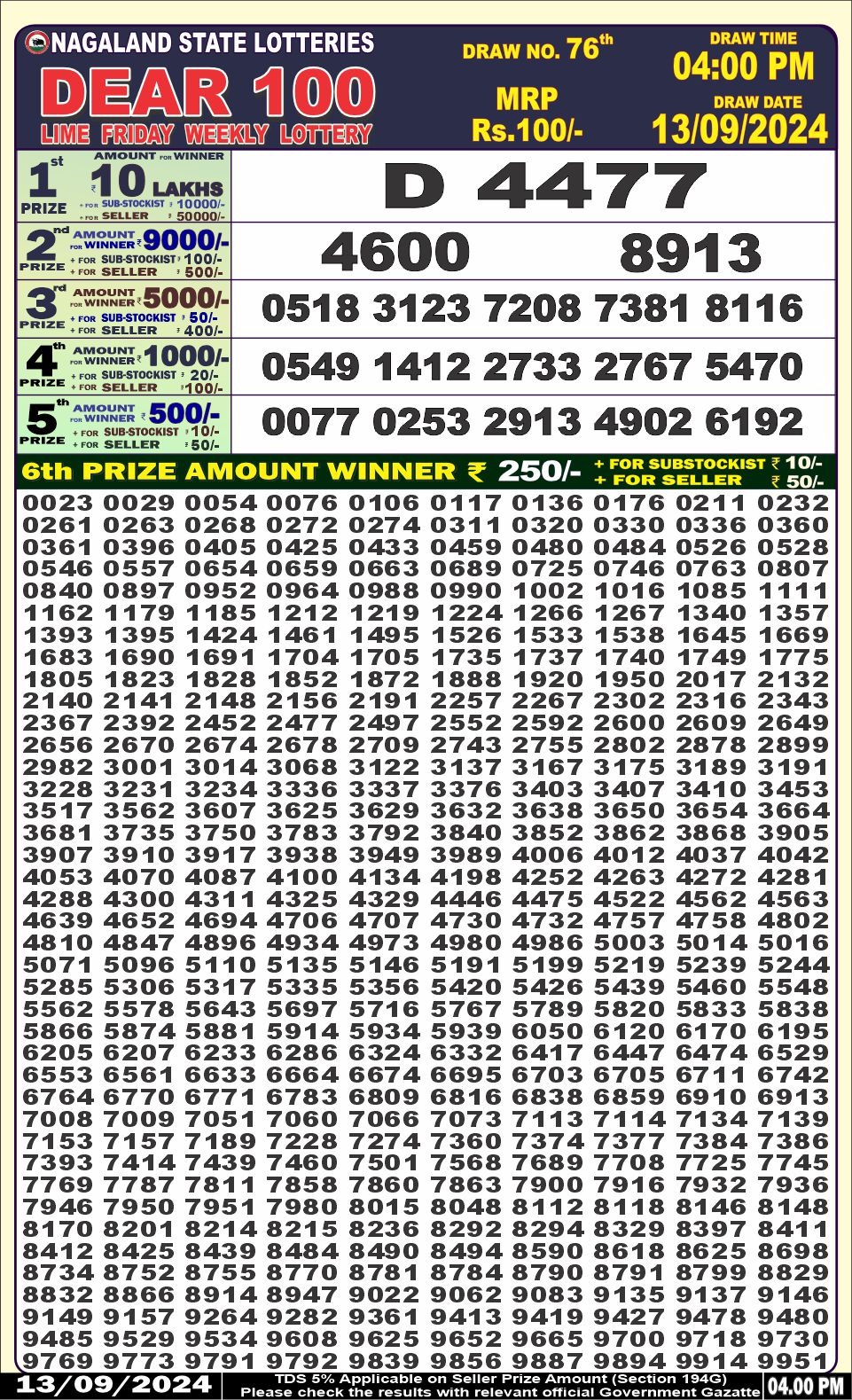 Dear10 lottery 1.30pm result 13 September 2024 →