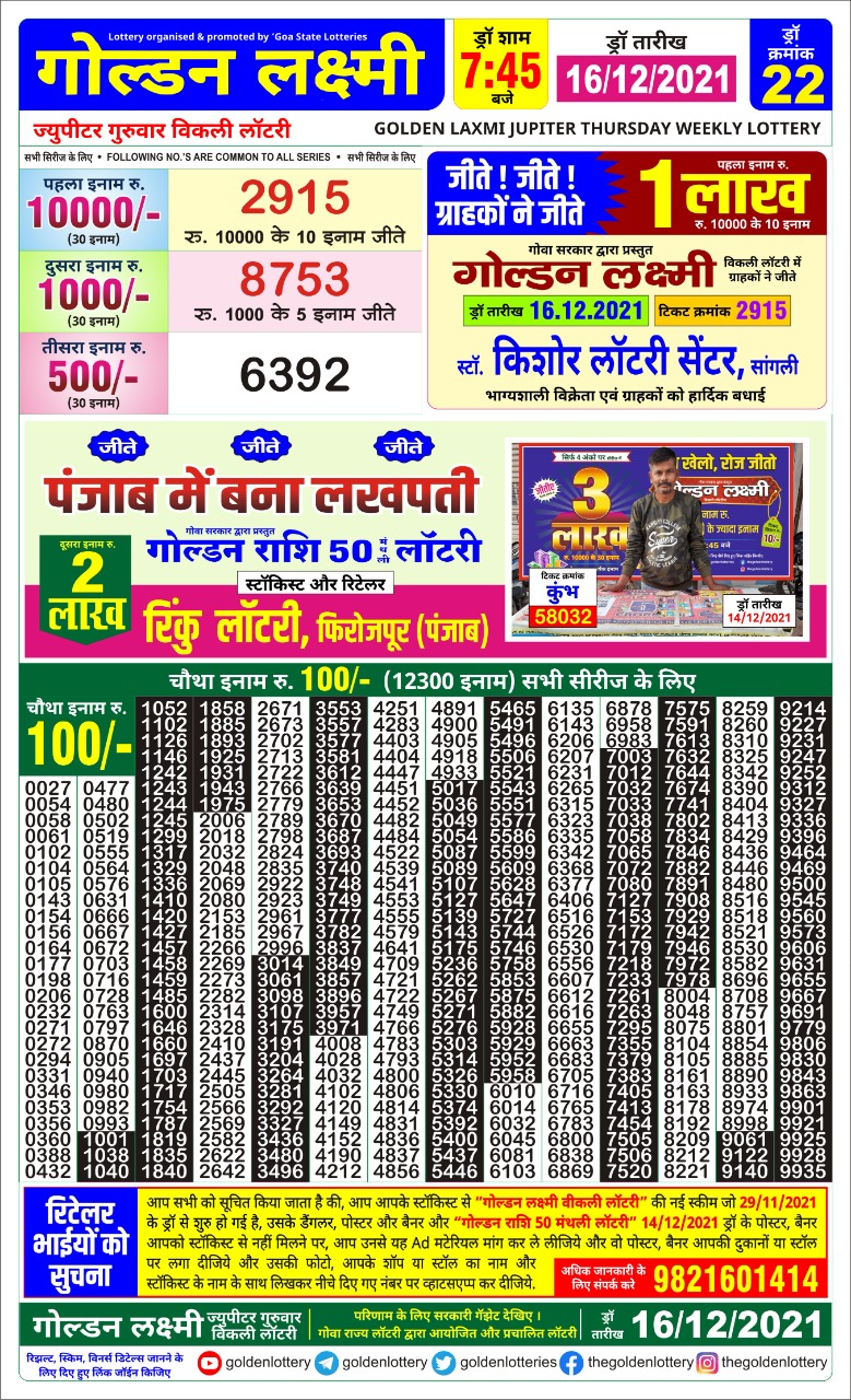 GOLDENLAXMI RESULT 7.45 pm 16.12.2021