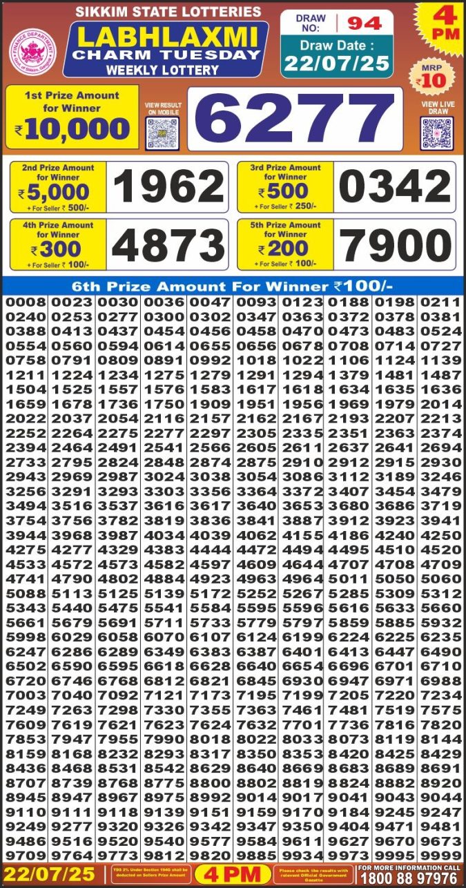 Labh Laxmi Lottery 4 pm 22.07.25