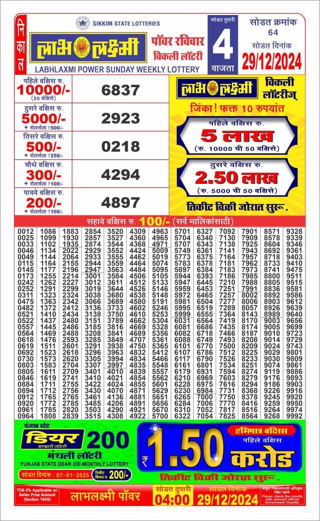 • Labh Laxmi Lottery Result Today 16.12.25 4 PM