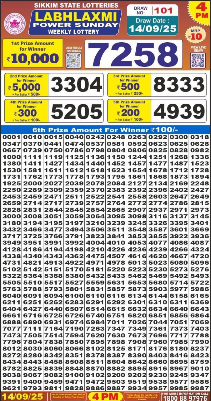 Labh Laxmi Lottery Result Today 14.09.25 4 PM