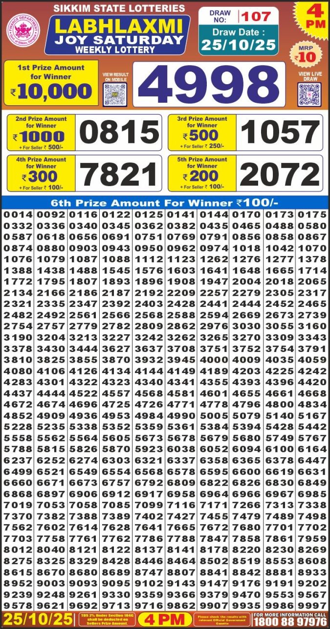 Labh Laxmi Lottery Result Today 25.10.25 4 PM
