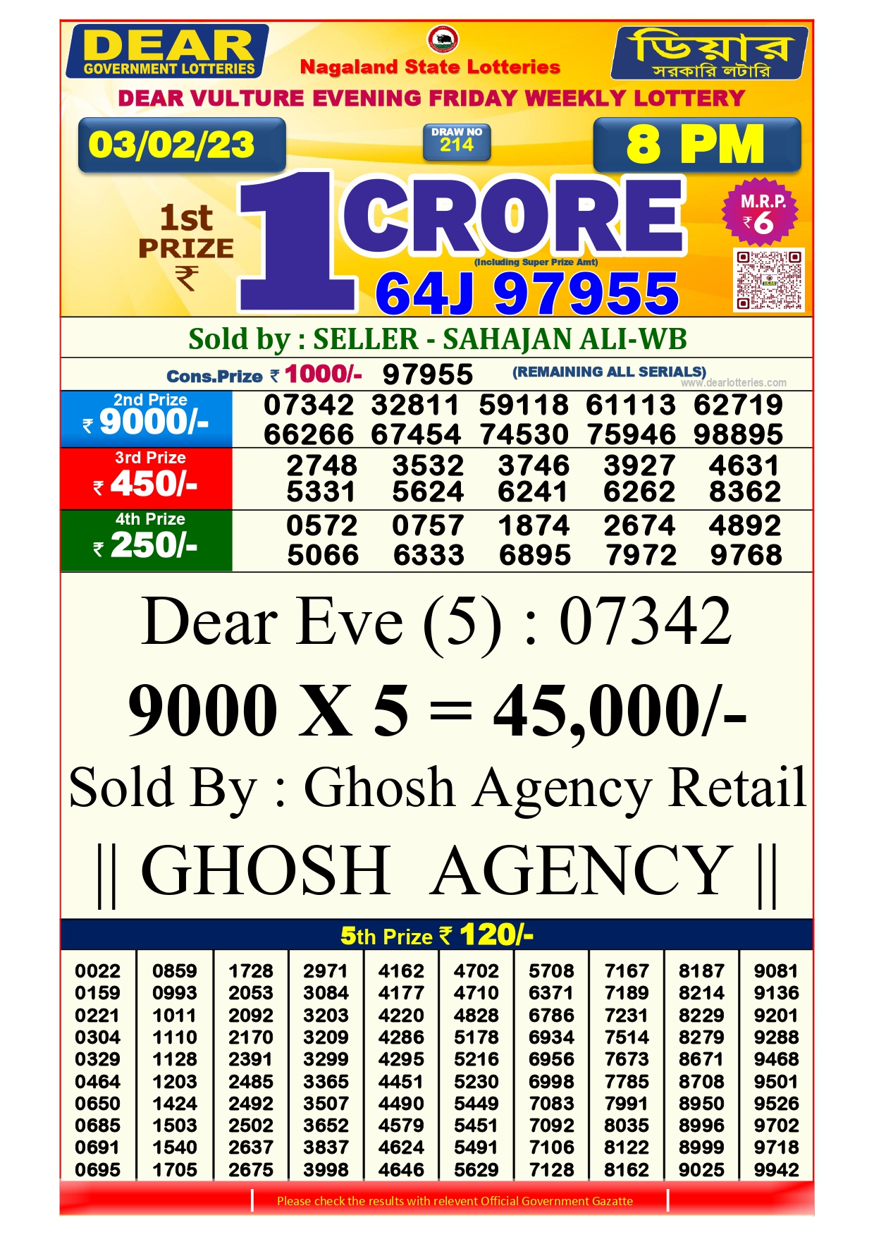 Nagaland State Dear Daily Lottery 3 Feb 2023 6pm Draw Result →
