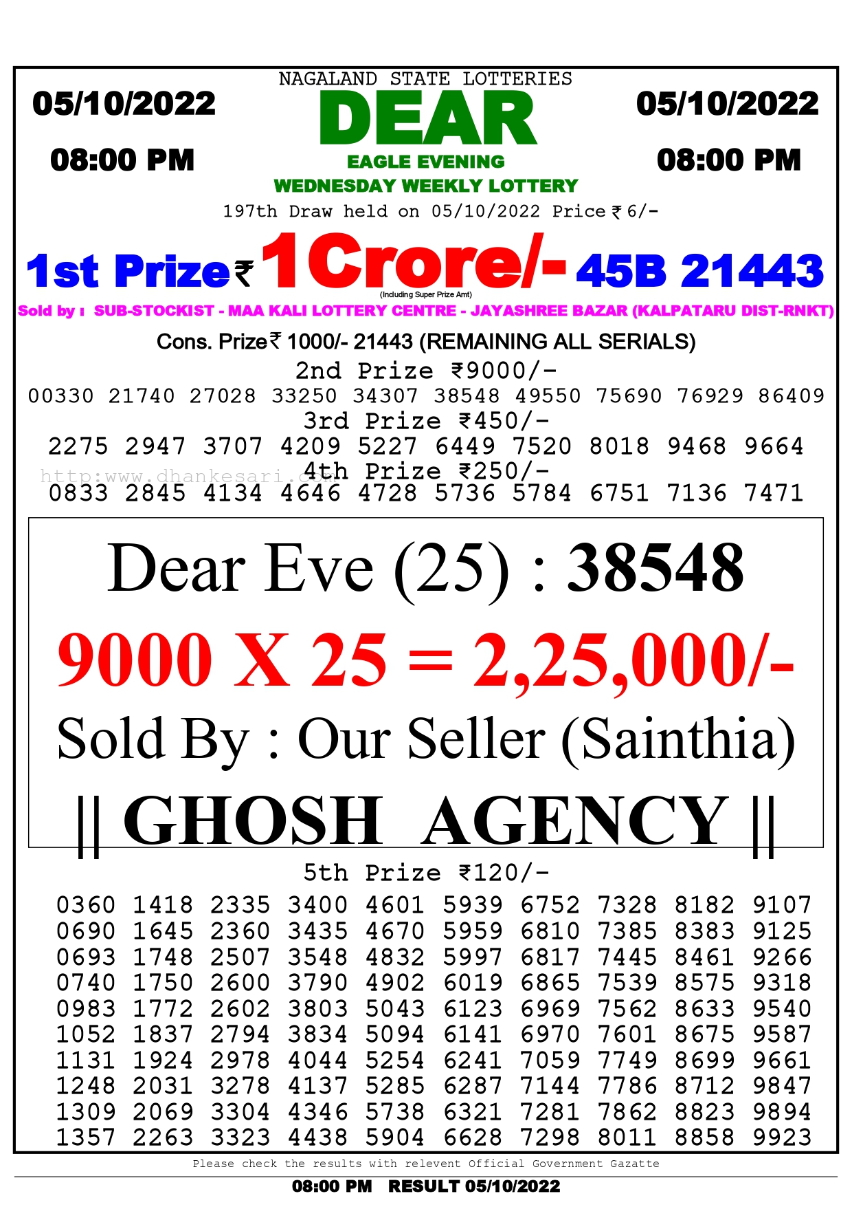 Nagaland State Dear Daily Lottery 05 Oct 2022 6pm Draw Result →