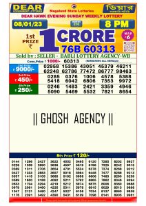Nagaland State Dear Daily Lottery 8 Jan 2023 6pm Draw Result →