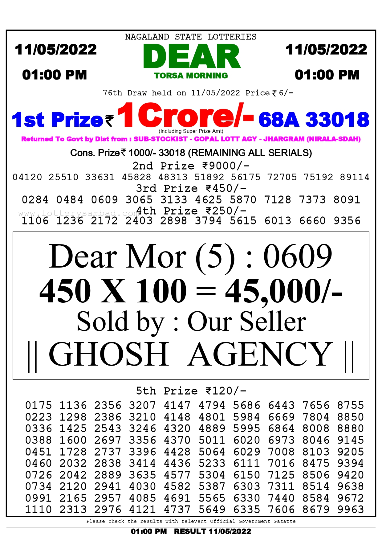• Nagaland Dear Lottery Morning Result 16.12.25 1 PM