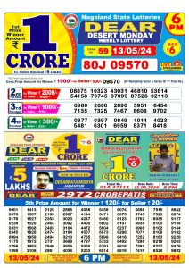 !! Nagaland State Dear Daily Lottery 13 May 2024 6PM Draw Result !!