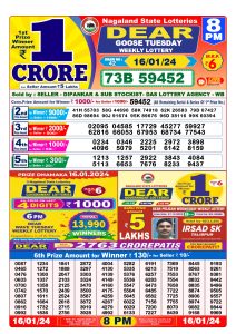 || Nagaland State Dear Daily Lottery :: 16-Jan-2024 8PM Draw Result ||