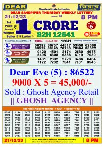 Nagaland State Dear Daily Lottery ::21 Dec 2023 6PM :: Draw Result →