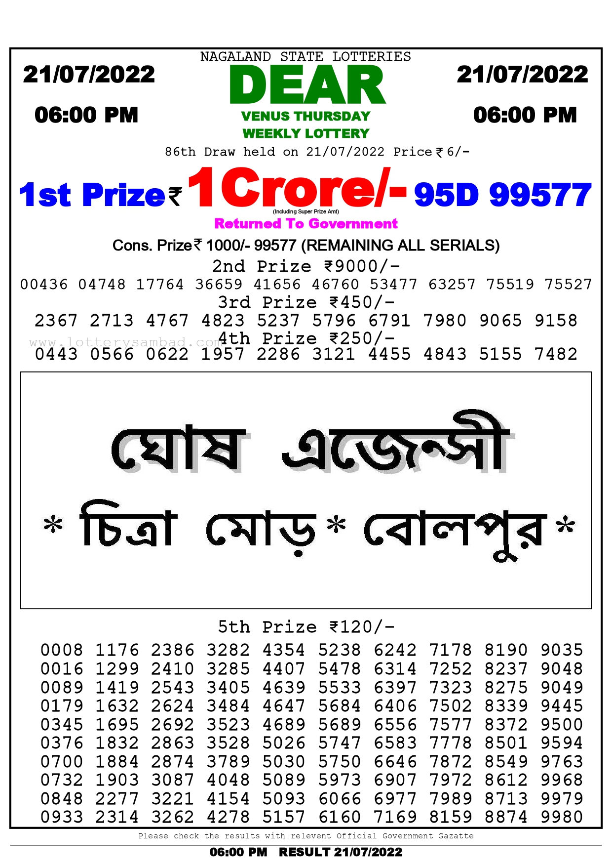 Nagaland StateDear Daily Lottery 21-July-2022 1PM Draw Result →