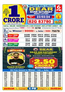 Nagaland State Dear Daily Lottery 23 Mar 2024 6PM Draw Result