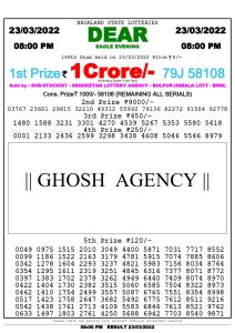 Nagaland State Dear Daily Lottery 23 March 2022 8PM Draw Result