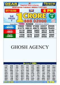 Nagaland State Dear Daily Lottery 27 Dec 2022 6pm Draw Result
