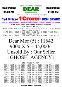 Nagaland State Dear Daily Lottery 2May 2022 1PM Draw Result