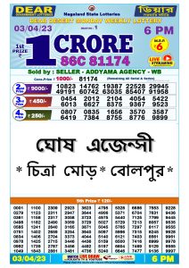 Nagaland State Dear Daily Lottery 3 April 2023 6pm Draw Result