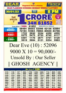 Nagaland State Dear Daily Lottery 30 January 2023 8PM Draw Result